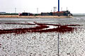 盘锦是个鱼米之乡,盛产大米、河蟹,路过的地方有很多小河,以稻米、河蟹出名也就不足为奇,在路边有好多卖河蟹和野鸭蛋的,河蟹个头太小,吃惯海蟹的人不见的看得上这种小河蟹,但这儿的河蟹的确还是不错的,野鸭蛋也很好吃的咧。盘锦除了大米、河蟹,还有石油,在农田尽头的地方,是采油机,这在盘锦好多地方都能看到。